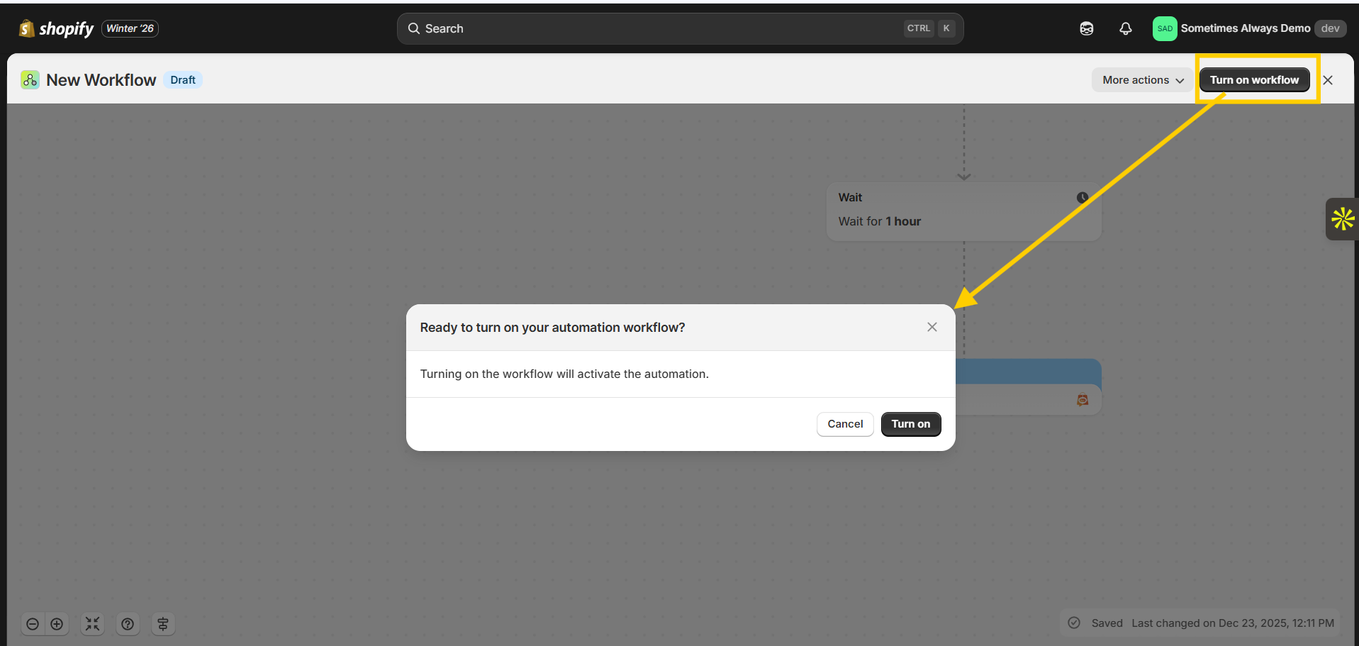 2. Click **Turn on workflow**. (right-corner)