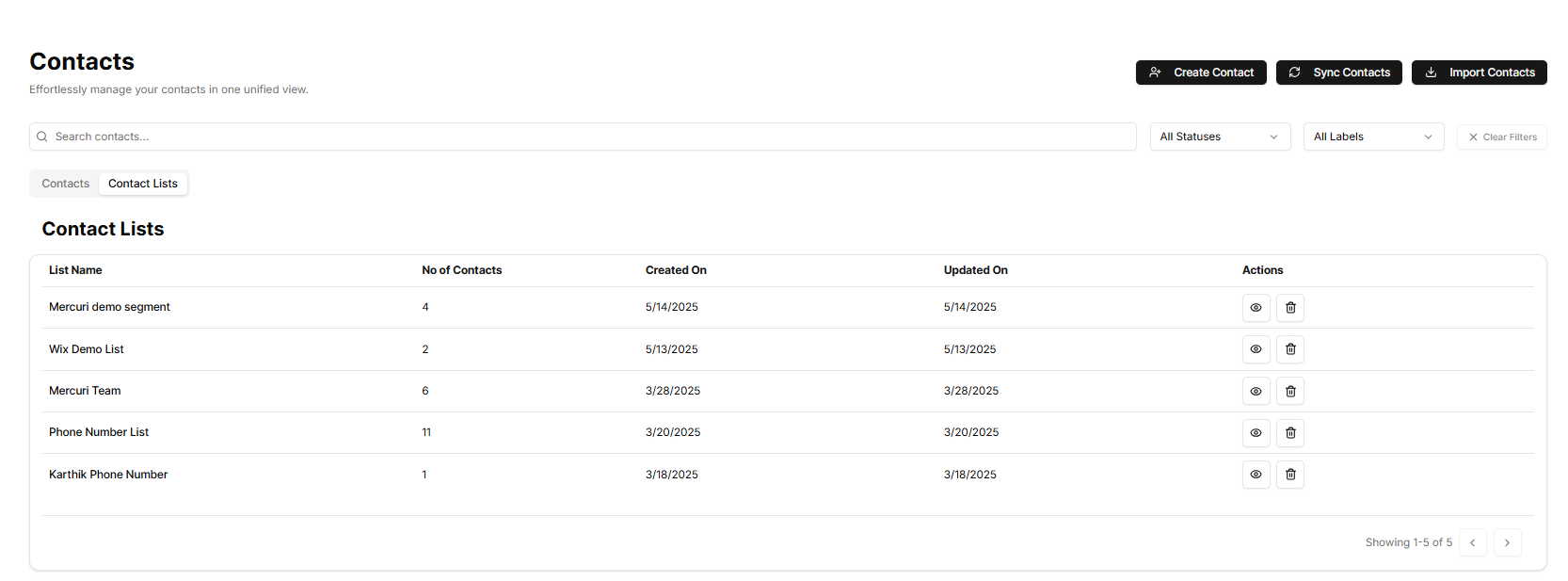 4. Você pode visualizar todos os seus segmentos salvos na seção **Contact Lists**.