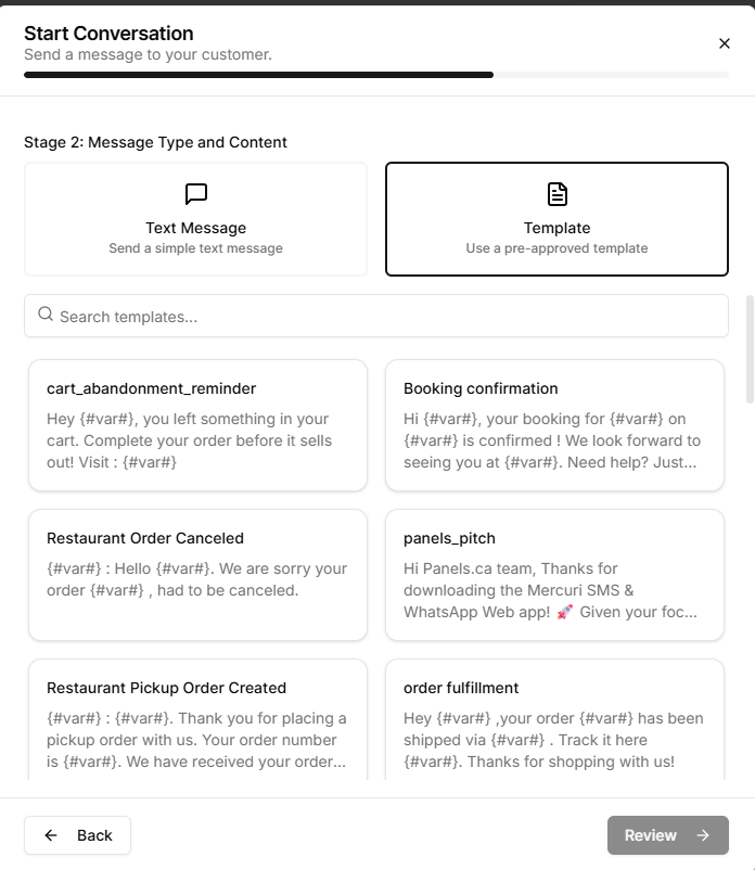 7. **Preencha os Campos Variáveis (se houver)** – Se o seu modelo contiver variáveis (por exemplo, nome do cliente, ID do pedido), insira os valores necessários.