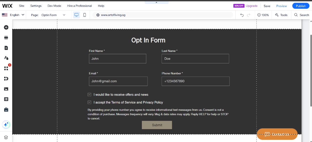 # Como Adicionar um Formulário de Opt-In para SMS ao Seu Site Comercial Wix