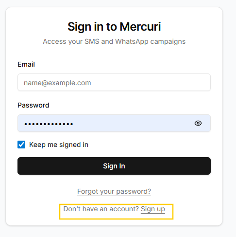 1. Adicione um número de telefone à sua conta Mercuri para começar a enviar e receber mensagens.
